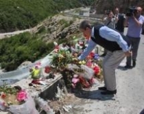 Visiting South of the country, Premier Berisha, is focused to put bouquets of flowers, in the place, where happened the tragic accident, on 14 May, near the Himara.